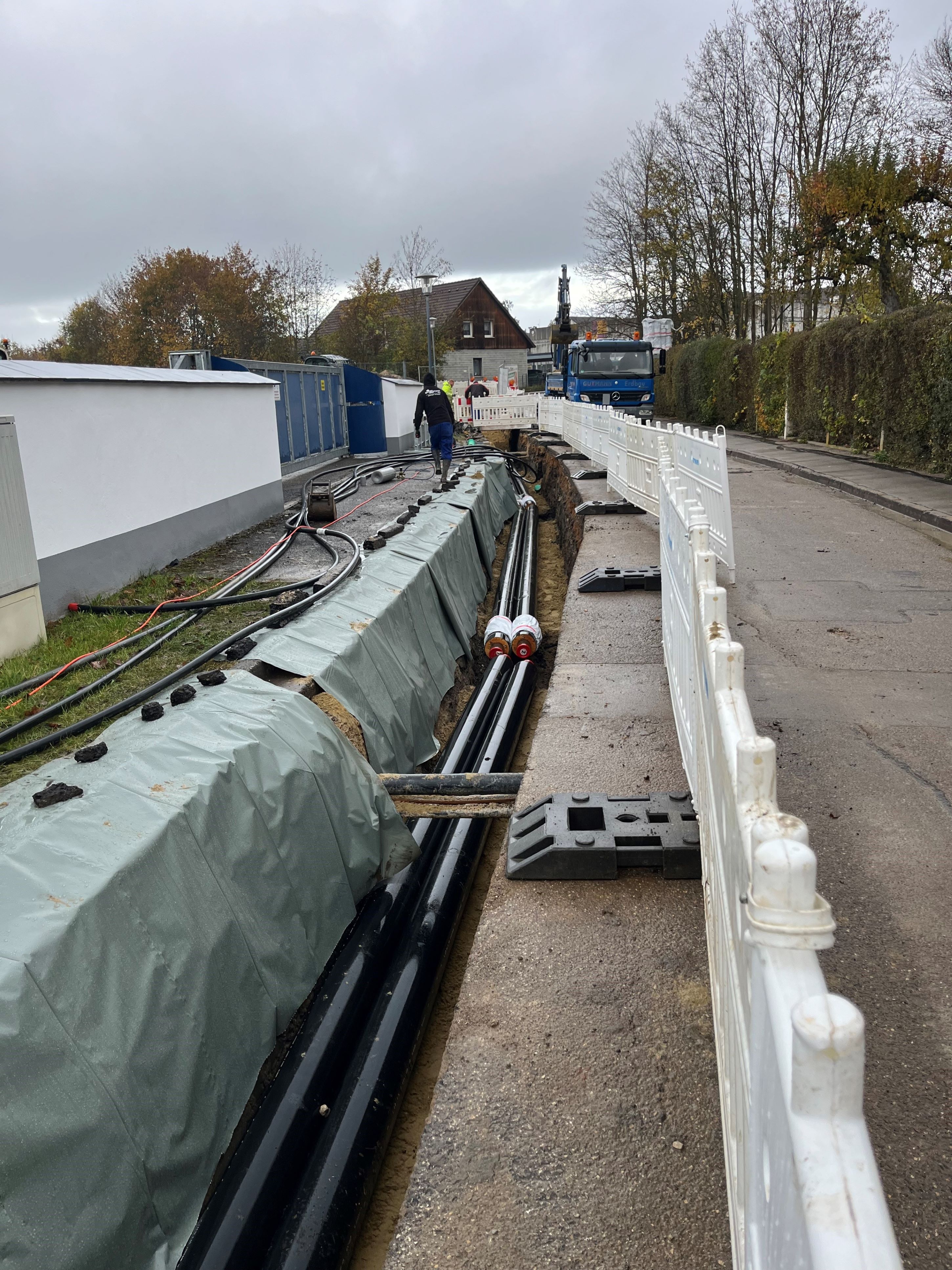 Rechtzeitig vor dem Wintereinbruch konnten wir die Leitungsverlegung in der Bachgasse größtenteils zum Abschluss bringen. Die Verbindung zur Firma JeldWen steht. Somit kann nun auch industrielle Abwärme für die Wärmeversorgung der Abnehmer in Oettingen genutzt werden.