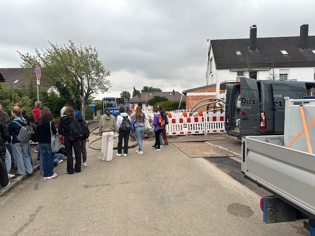 Schüler und Schülerinnen der 10. Klasse konnten sich an verschiedenen Stationen über den Bau und die Technik unseres Nahwärmenetzes informieren. In unserem Heizhaus, dem Heizraum im AEG und vor Ort auf der Baustelle konnten wir die Zusammenhänge erläutern und Fragen beantworten.